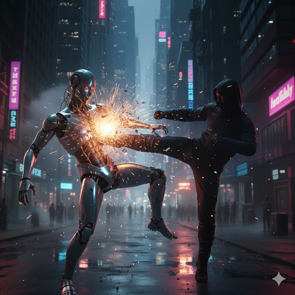 それから街行くロボットにもストリートファイルのスキルが求められるようになると、ロボット同士の喧嘩を誰も止められなくなりそう…