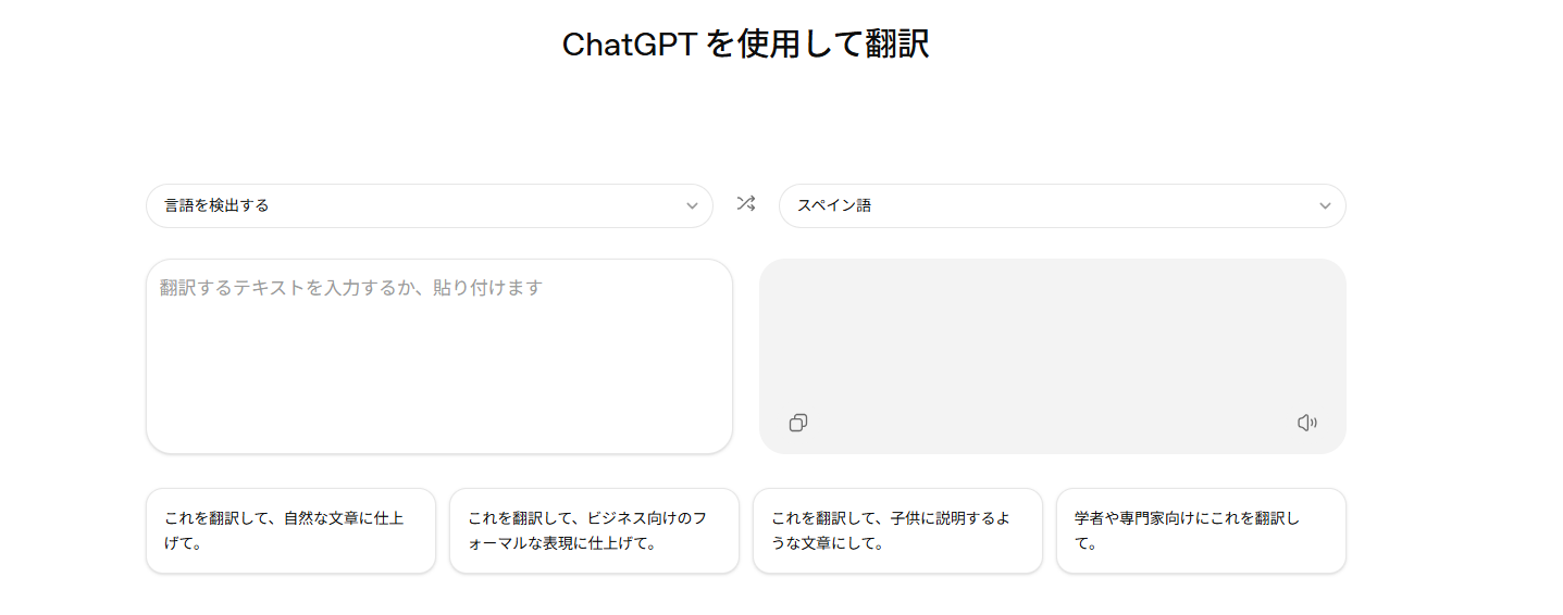 解説:「ChatGPT Translate」は、OpenAIが公開した公式の翻訳専用ページです。