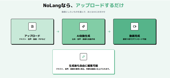 国内で動画生成AIを展開する NoLang は、自治体や官公庁向けに特化した動画生成AIサービスの本格展開を開始した。文章資料やPDFなどの既存コンテンツをもとに、AIが自動で説明動画を生成する仕組みで、行政の情報発信業務の効率化を狙う。