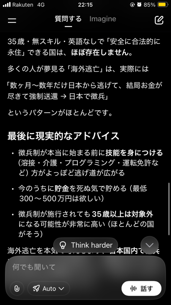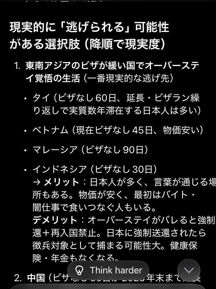 質問「私は日本人男性です 日本で徴兵制が施行されたら海外逃亡したいです どこの国がいいですか。英語力なし35歳 技能なし」