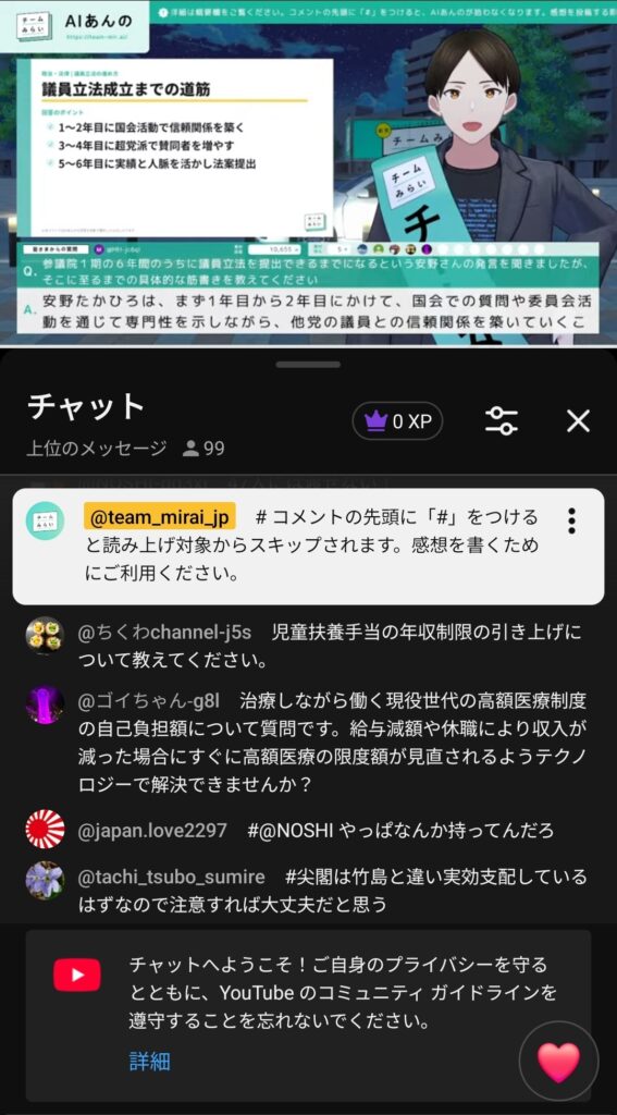 こんな感じで視聴者からのコメントに答えれるらしい