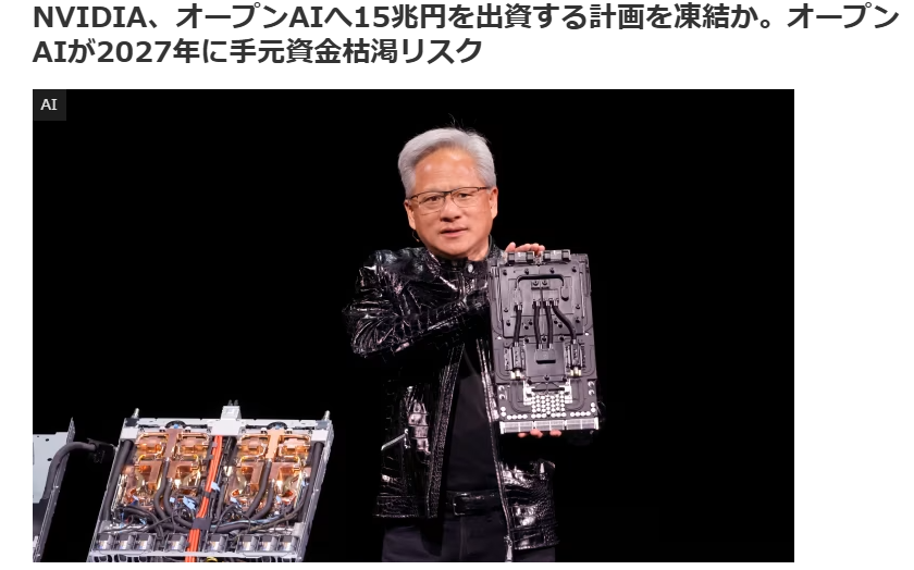 ・NVIDIAのジェンスン・ファンCEOは、OpenAIへの1000億ドルの投資約束を否定し、あくまで打診があっただけで慎重に判断すると述べました。