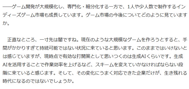 ハードウェアプラットフォーマーとしてはゲーム制作に使える生成AIの登場はむしろ好機では