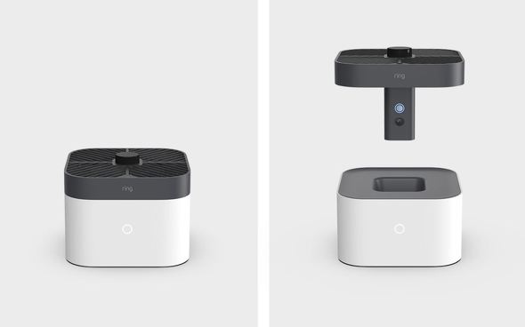 The drone patrols the premises when everyone leaves, periodically returning to the base to recharge.
