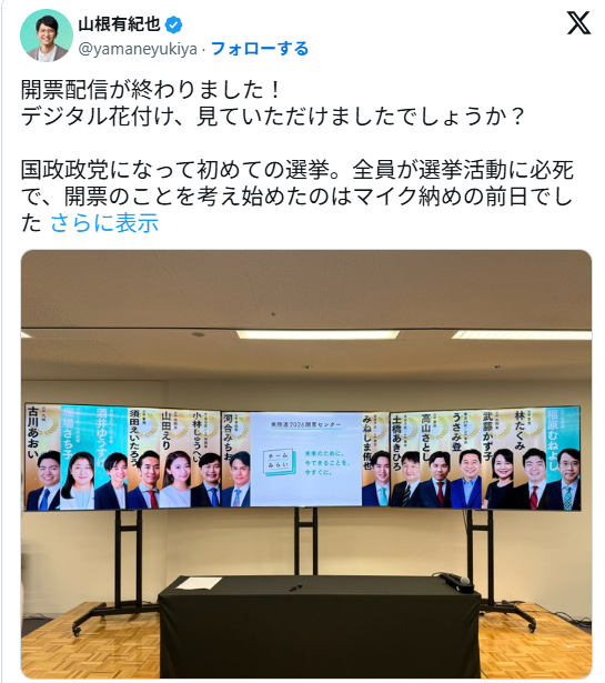 @衆院選の結果、チームみらいの候補者は11名が当選となりました。チームみらいがひとり政党を脱し、文字通り本当のチームとなれたことを嬉しく思います。