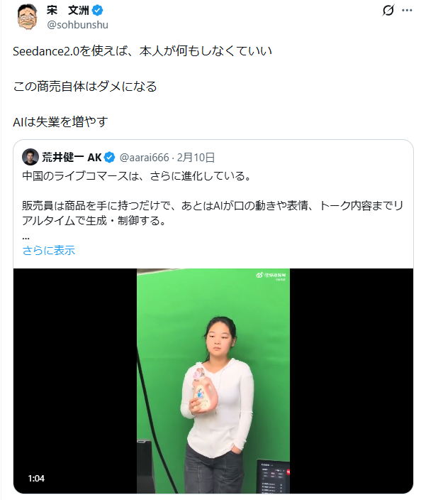 ライブ配信者は、商品を持って立っているだけで成立する時代になった。… pic.twitter.com/KZveAl2d42