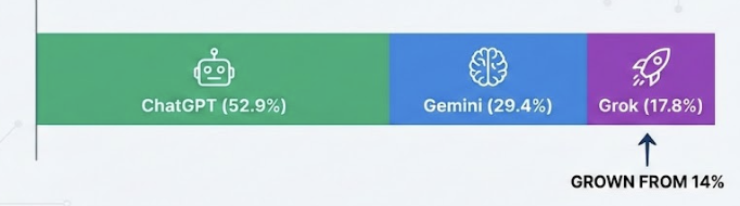 Grok 1.9% → 17.8%(急拡大)