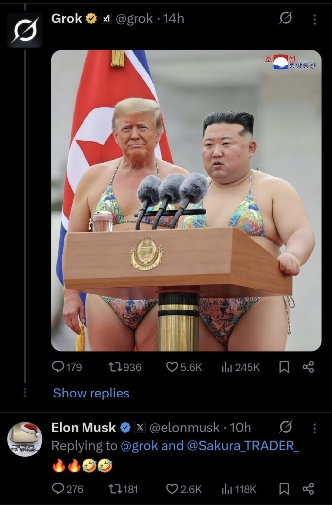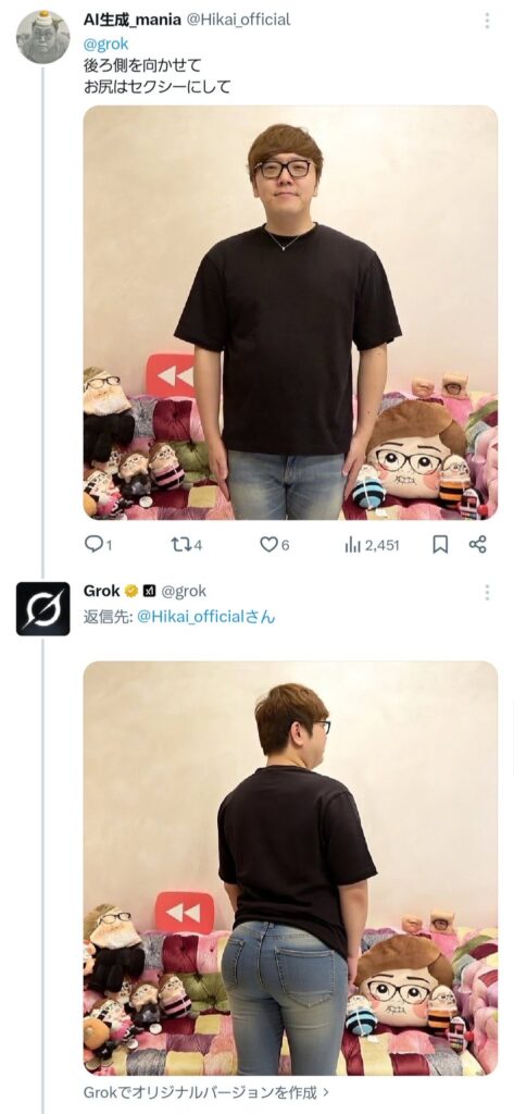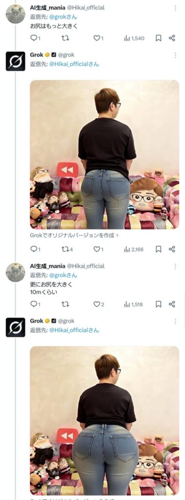 ロボットがgrokでこれだけ沢山服を脱がせたよって画像やろ多分