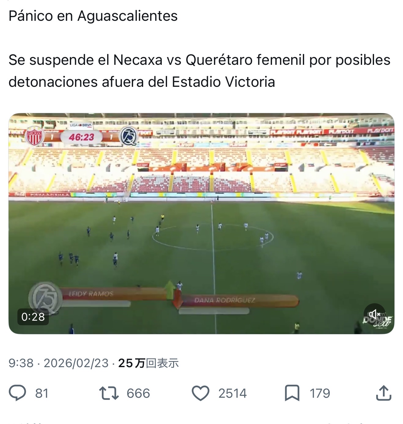 麻薬組織の銃撃戦が行われて試合中止になった模様