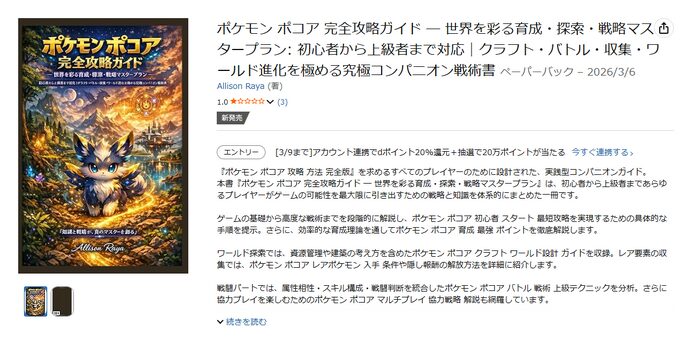 ・Amazonなどで『ぽこ あ ポケモン』の生成AI製とみられる「偽攻略本」が複数発見されており、注意が呼びかけられています。