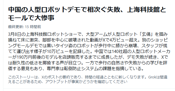 笑いごとじゃないだろ。ショッピングモールでのデモでも、制御不能になって展示物をなぎ倒したらしいじゃないか。高性能を謳うのはいいが、まずは自立歩行の安定性をどうにかすべきだったな