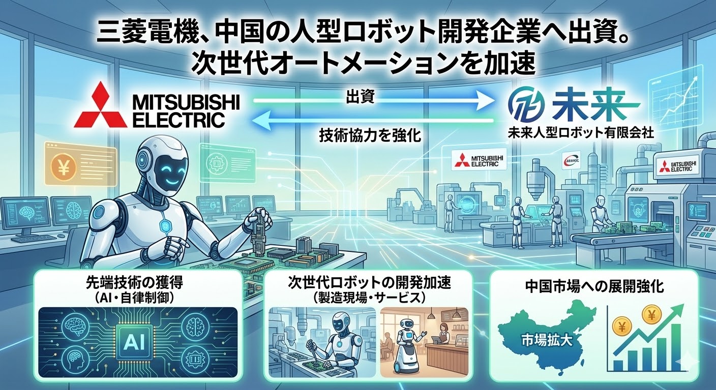 中国は今、国を挙げて人型ロボットを『破壊的製品』として支援していて、開発スピードとコスト競争力が凄まじいんだ。三菱としては、そのスピード感を取り込みつつ、自社の制御機器との親和性を高めて、標準のプラットフォームを握りたいんだろうな